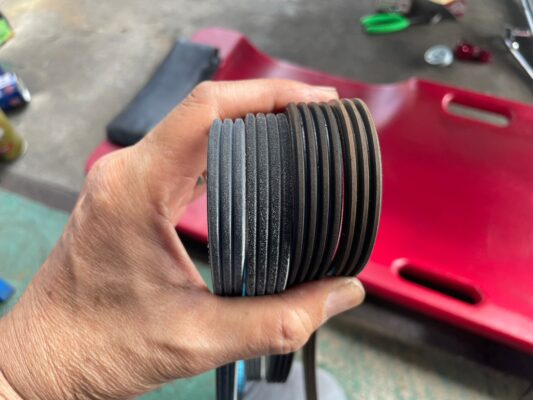 ファンベルトが摩耗してキュルキュル音が発生していたので交換しました。