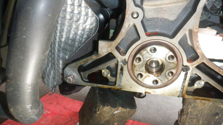 クランクシールはリングギアを取り外した所に付いています。