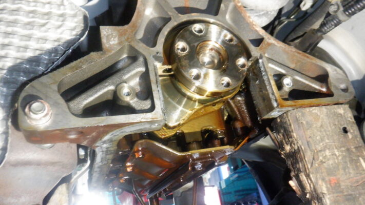 交換するのでオイルパンを取り外しています。