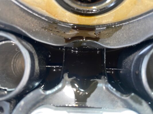 ↑かなり拡大していますが、同じところにオイルが溜まっています。