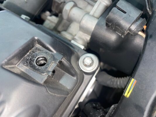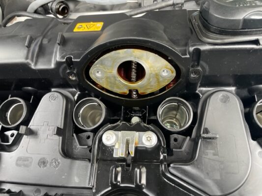 ↑バルブトロニックモーターの真下のボルト周辺がオイルで濡れています。