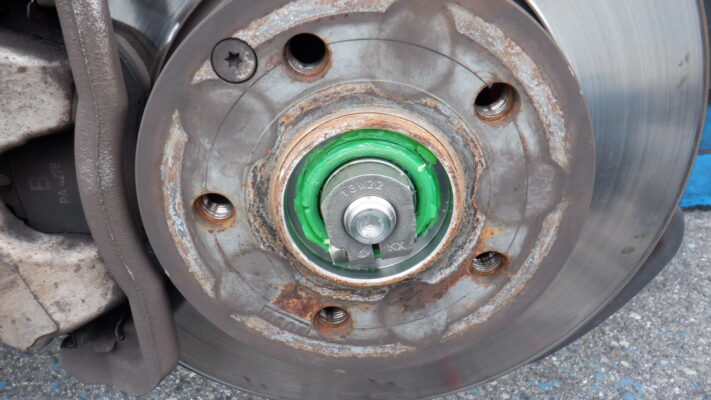 ジャッキアップをして足回りのガタツキを点検すると左右ハブベアリング