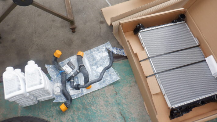 ラジエータとアッパーホースとロアホースを交換します。