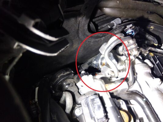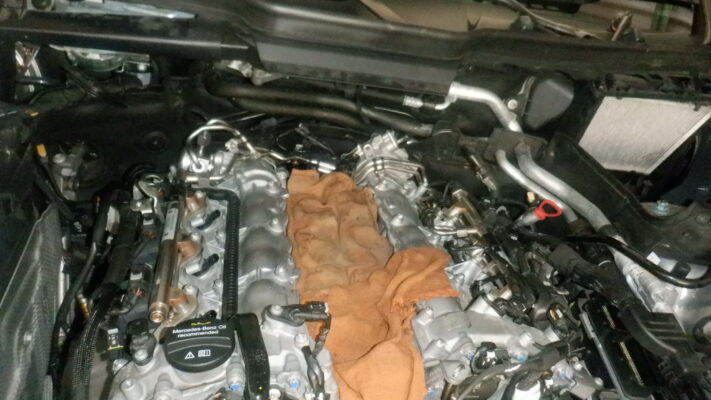 右バンクの奥に装着されているので交換にはインマニの脱着が必要です。