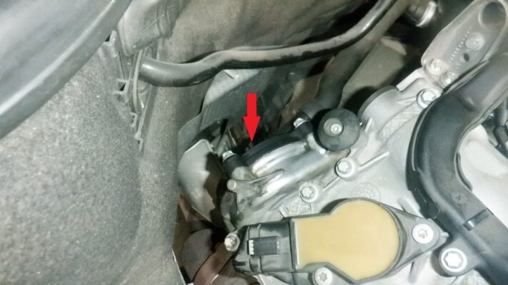 点検していくと、矢印の部品からオイルが漏れていたので