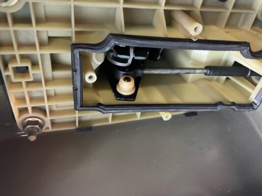 ↑シフトレバーの下側に、シフトケーブルが刺さっていますが、そこの