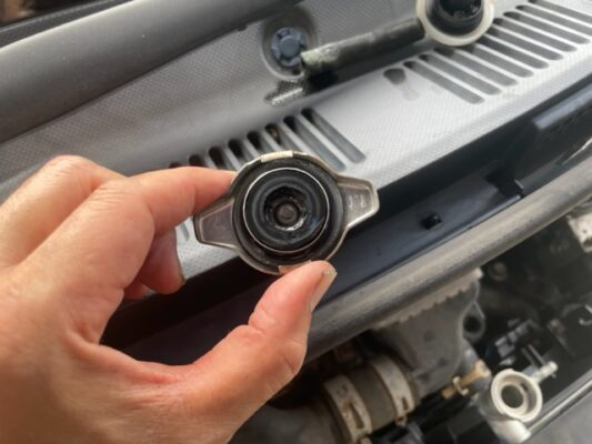 ↑ラジエターキャップも壊れており同時に交換です。