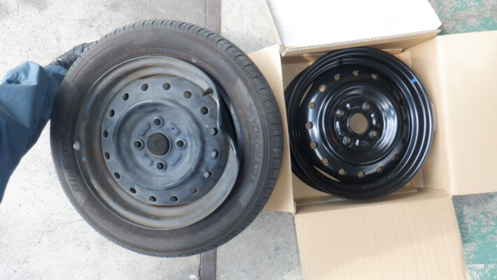 ↑ホイルも損傷してますので、タイヤ入れ替えします。