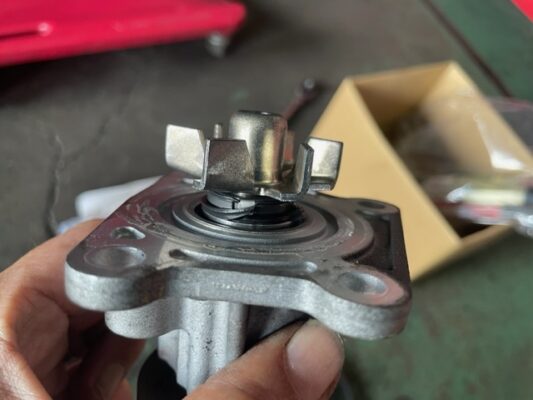 ↑異音の原因は、ウォーターポンプシール切れている為です。