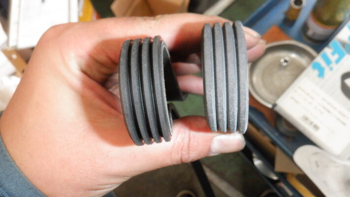 上記写真内の左側が古いベルトとなっており溝が深く摩耗していることが確認できます。