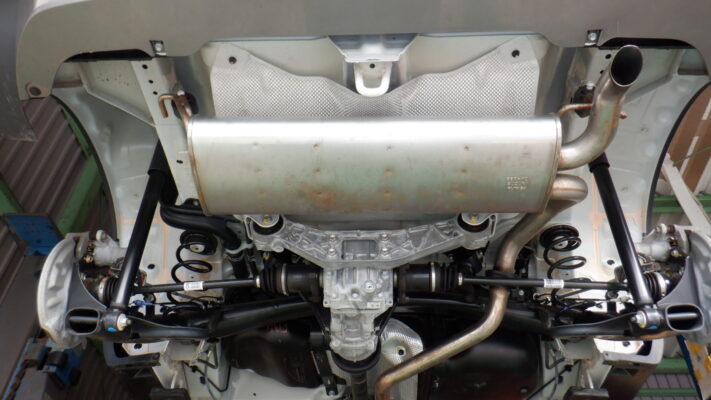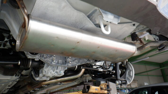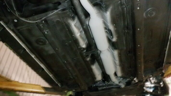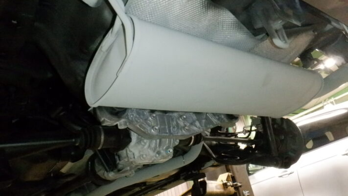 リフトアップして下回りの確認しながらカバー類の取外して、下回りをスチーム洗浄します。