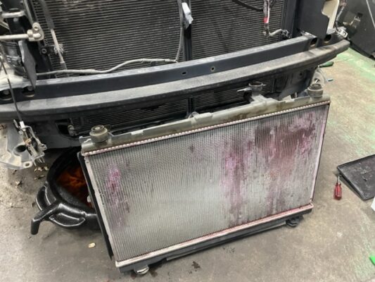 ↑ノアのラジエター交換。 フロントバンパー外しての作業です。