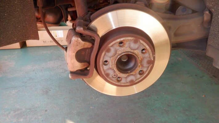 リヤ・ブレーキ点検・清掃・ブレーキパット残量8.4mm