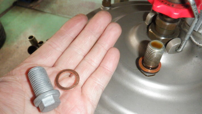 部品を取り付け後エンジンオイル・冷却水を入れて、漏れの再点検