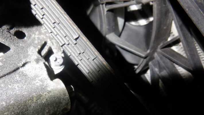 冷却水漏れとは関係ありませんが、ファンベルトが千切れそうだったので交換しました。