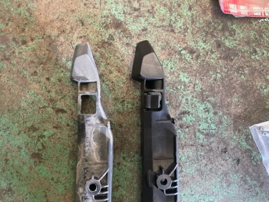 ↑バンパーの両サイドリテーナー交換。 爪が割れてバンパーのちりが