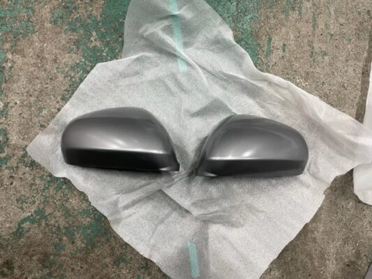 ↑ドアミラーカバーの塗装後、車両に取り付け。