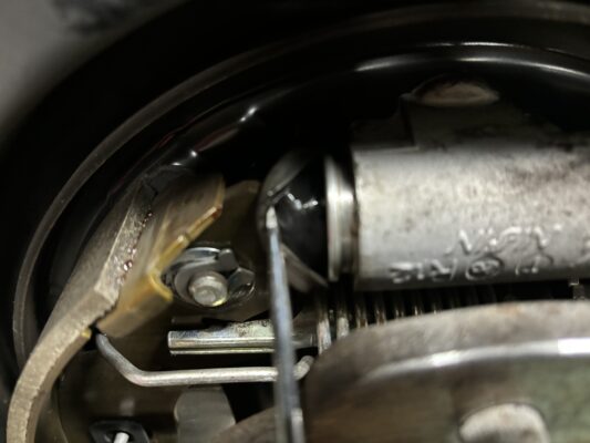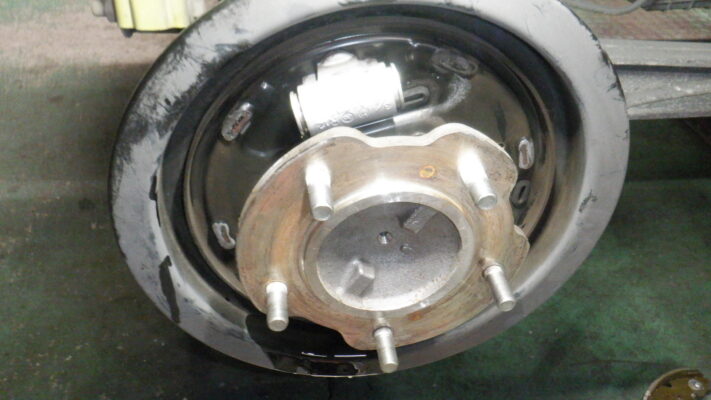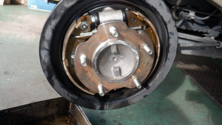 リヤ・ブレーキ点検・清掃・ライニング残量3.9mm 4.1mm、カップキット交換