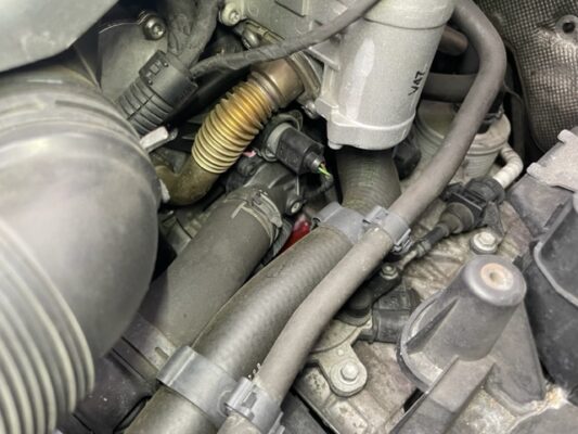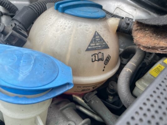 ↑入庫時、冷却水臭いのでボンネットを開けると、漏れている個所を発見。