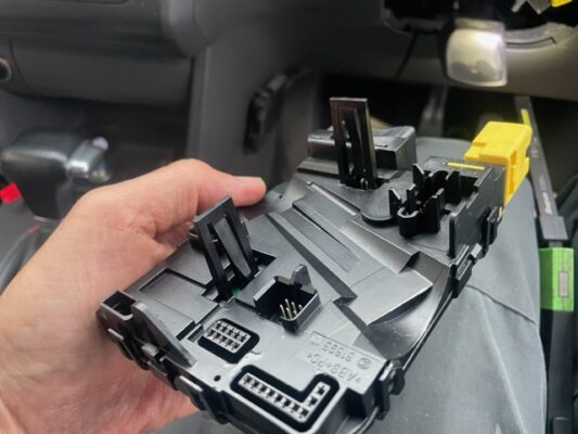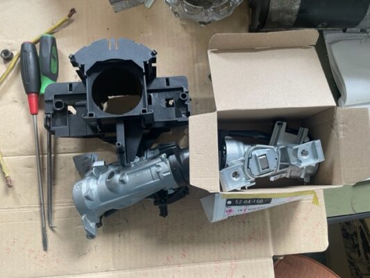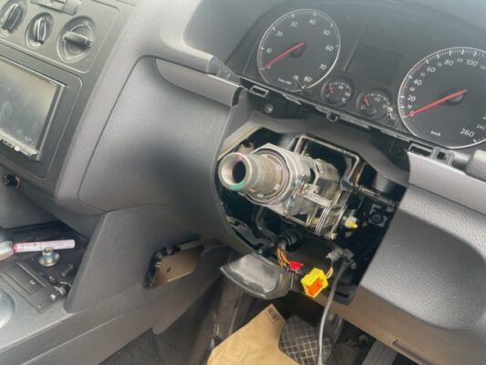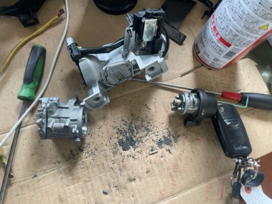 ↑カギについては、ロックシリンダー交換の為、ステアリング周辺を外します。