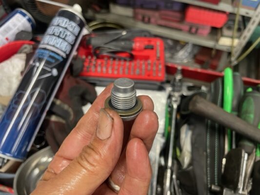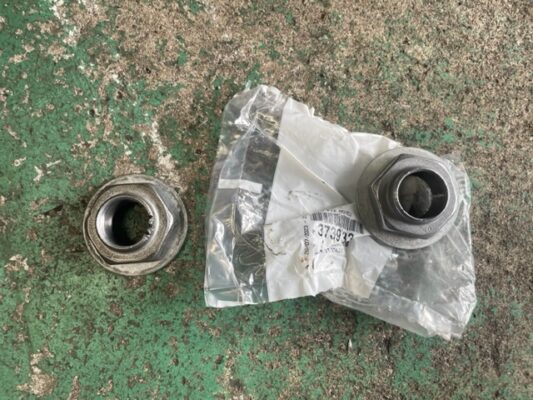 ↑ドラムセンターのナットは再利用できないので、交換し(右側NEW)