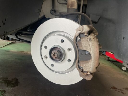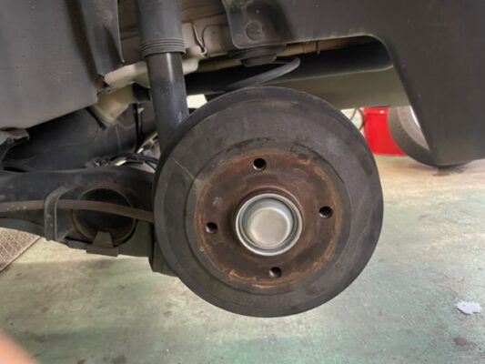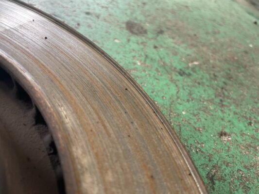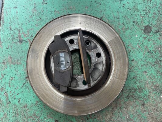 ↑フロントブレーキについては、パッド残量も少なく、ローターも摩耗している