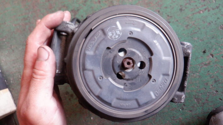 取り外したコンプレッサーを点検すると、