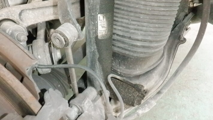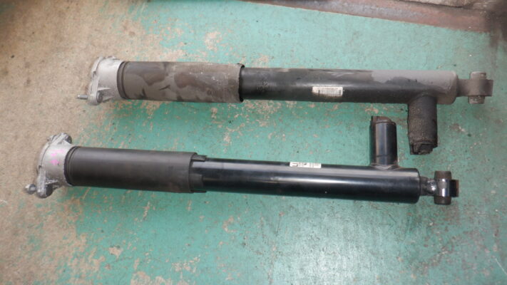 ↑こちらは、リア左側のショックアブソーバーオイル漏れです。