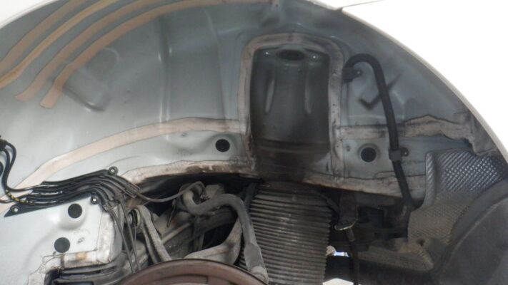 ↑下側からは、フェンダーライナー等外し、ショックの取り外し、