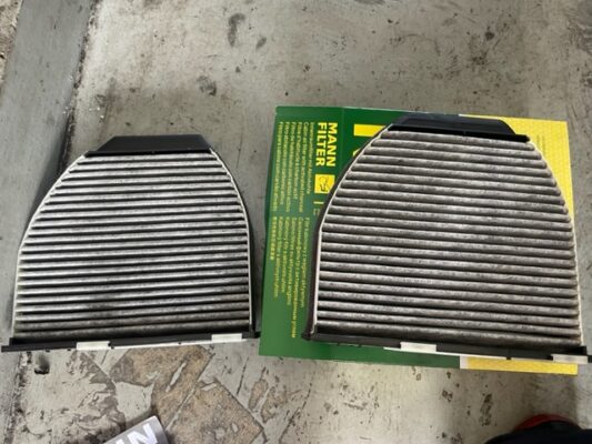 ↑室内のエアコンフィルターの交換。1年または1万km毎の交換です。