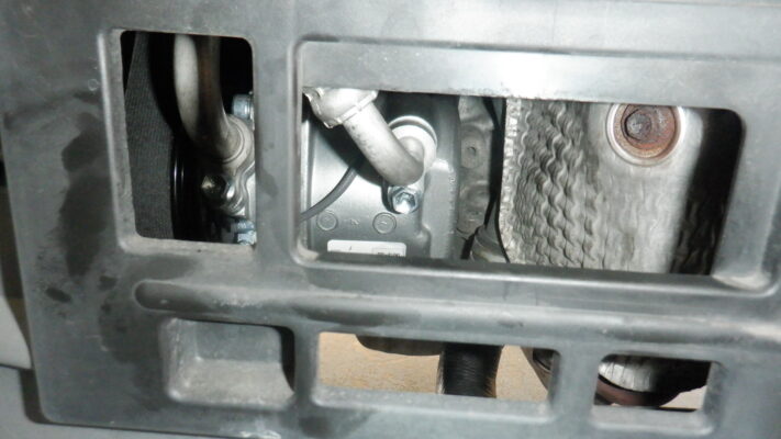 異音の発生条件を探っていると、エアコンのコンプレッサーが