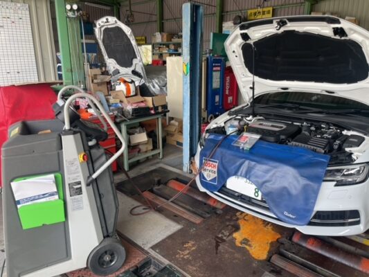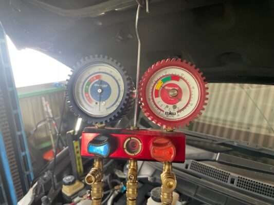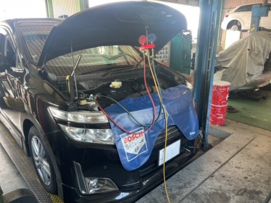 Y様、エルグランド、エアコンガス点検。