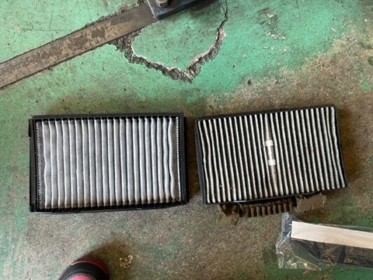 ↑室内のエアコンフィルターの交換。 1年もしくは1年毎の交換です。