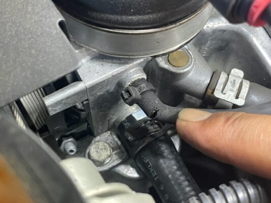 ↑吸気側から、オイルセパレーター間の途中チェックバルブで割れがあり、