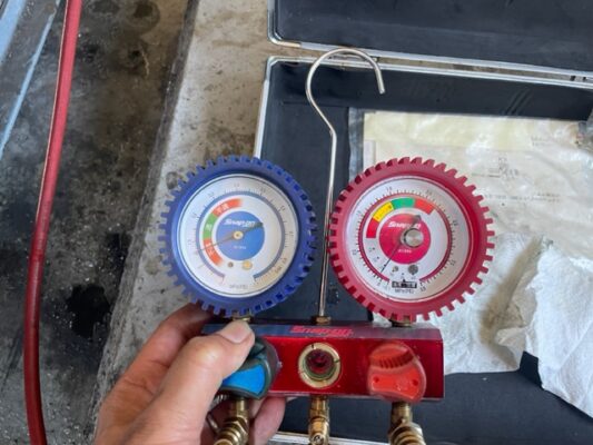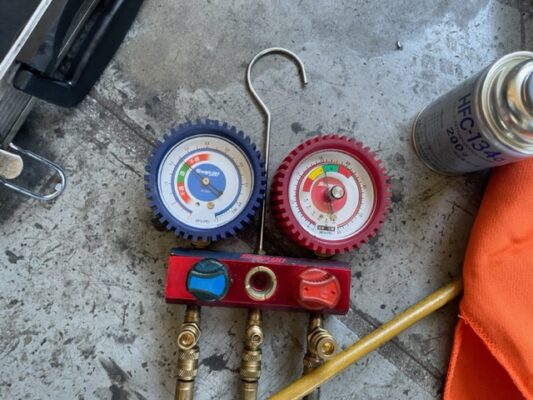 追加作業ですが、エアコンの効きが弱いのでガスチャージさせて頂きました。