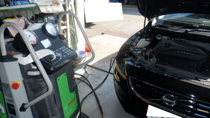 ガスを注入。他に漏れがあった場合の事を考え、蛍光剤も注入しました。