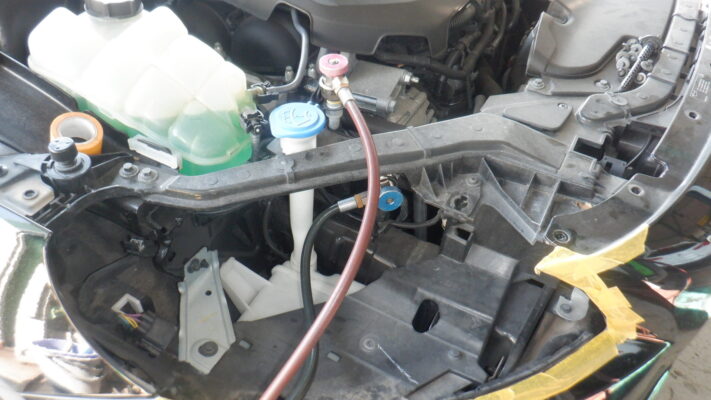 ヘッドライトが邪魔をして低圧側のカプラーが接続できなかったのでヘッドライトを取り外しました。