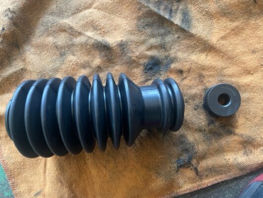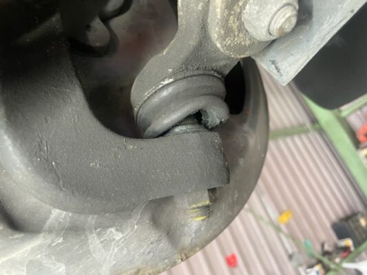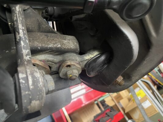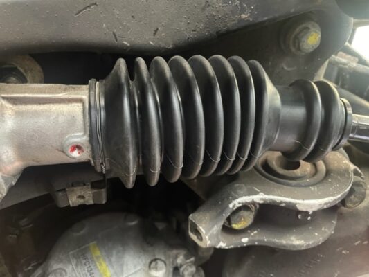 ↑ステアリングラックブーツ亀裂があり、少しオイルも滲んでいるようです。