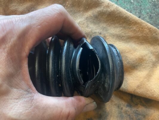 ↑ラックブーツ外してみると、破れています。