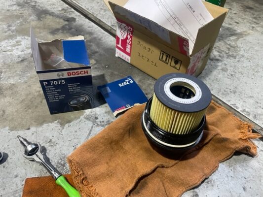 E様、ボルボV60、オイルとエレメント交換。次回交換は、37900kmです。