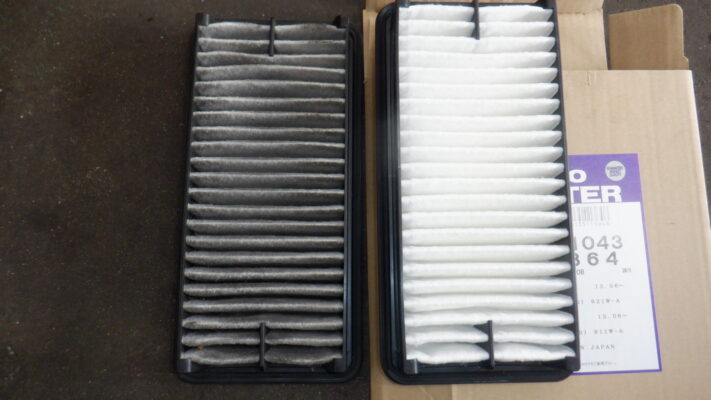 エアエレメントが汚れているので交換しました、汚れた状態のまま使用するとエンジン不調などの原因になります。