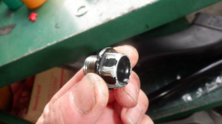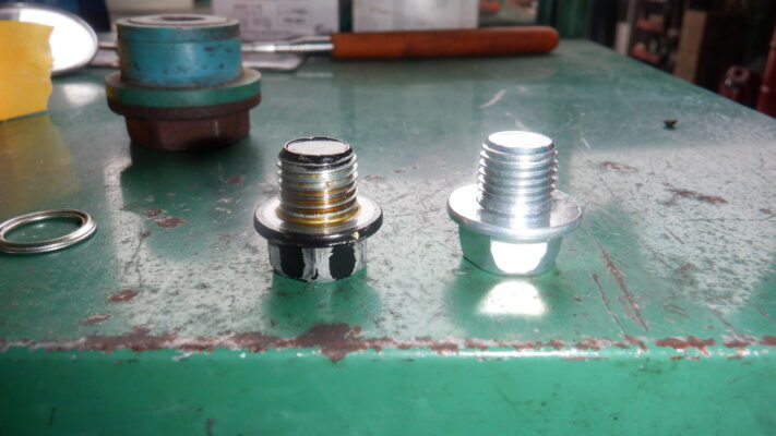 ドレンボルトを緩めても硬くて手で回せない状態でした、オイルパン側とボルトをを修正しましたがボルトのネジ山と頭側の状態も悪いので新しく交換しました。