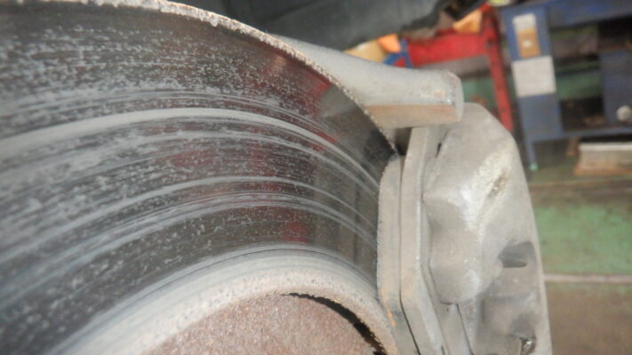リヤブレーキ点検・清掃・ブレーキパット残量7㎜です