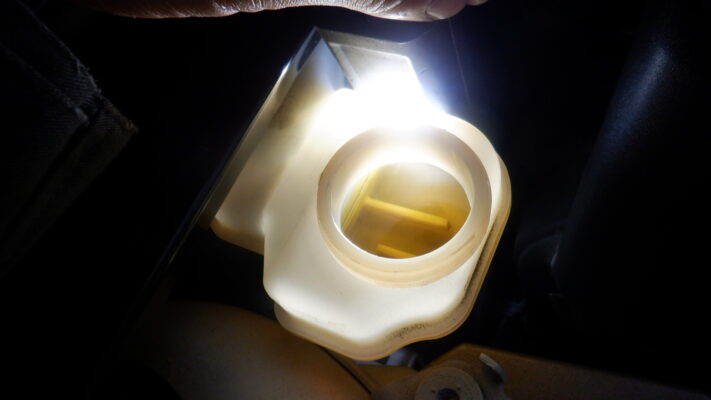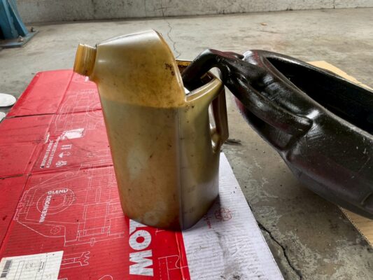 フラッシング後、オイルを排出して抜けた量を測定します。