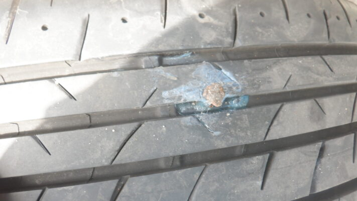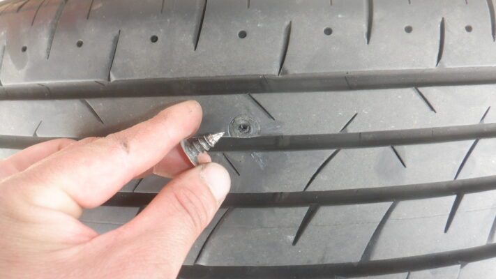 タイヤにネジが刺さっていたので