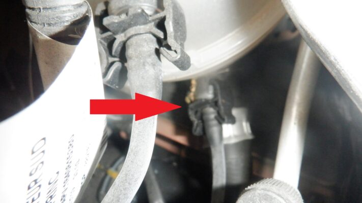 点検をすると、タンク下部のホースに漏れた形跡があるので
