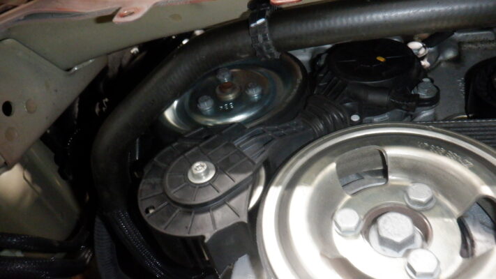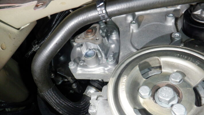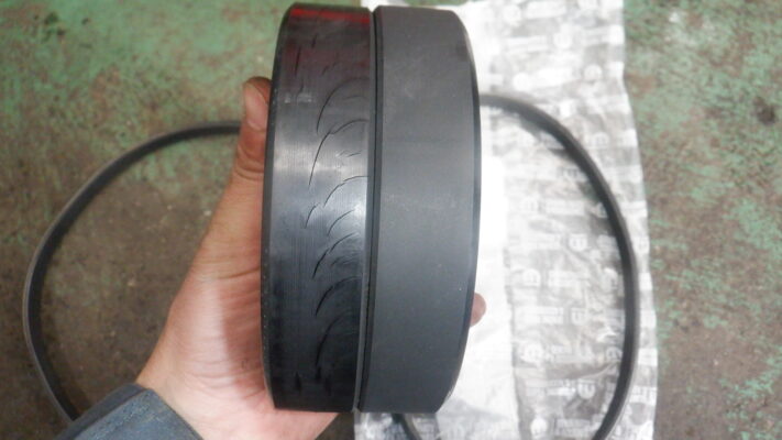 ウォーターポンプのプーリーがひび割れていたので交換しました。