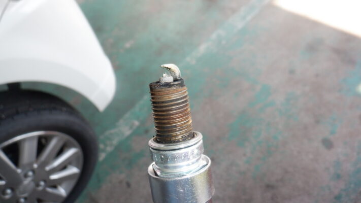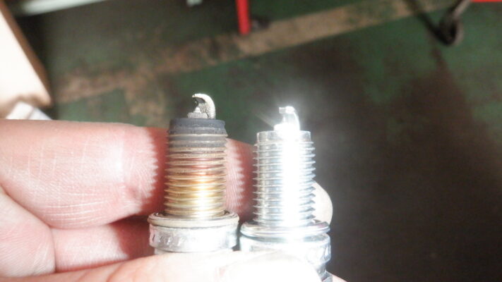摩耗して細くなっています、交換せずに使用すると摩耗が酷くなりエンジン不調の原因になります