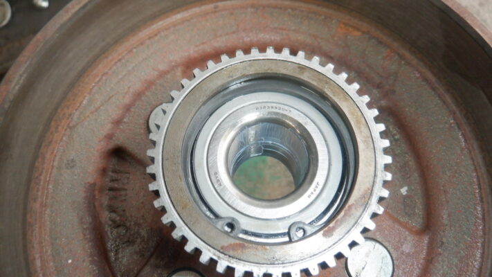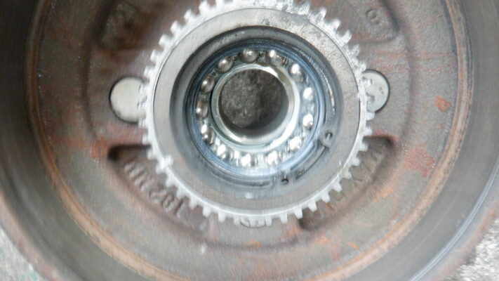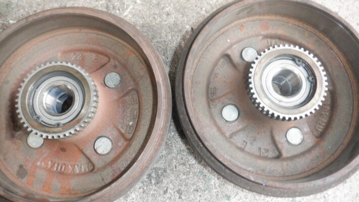 ブレーキの点検で左側ドラムを外す時に固着があり、スライディングハンマーで外しましたが、内側のハブベアリングが固着で破損していました。