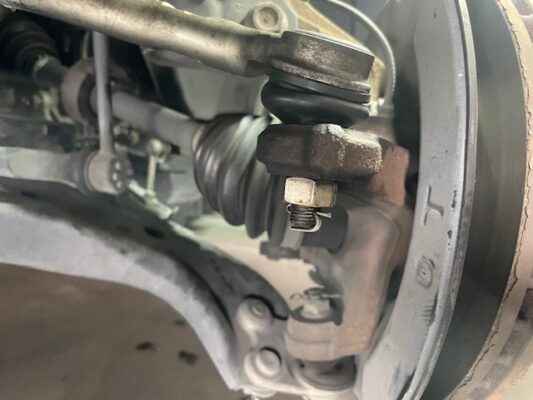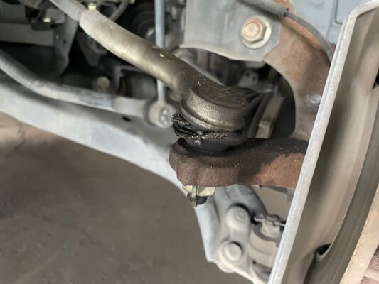 ↑フロント右のタイロッドエンドブーツが破れているので、